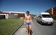 Красиво гуляет обнаженной дамочка с пирсингом.