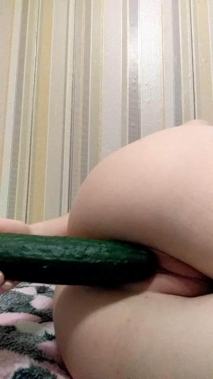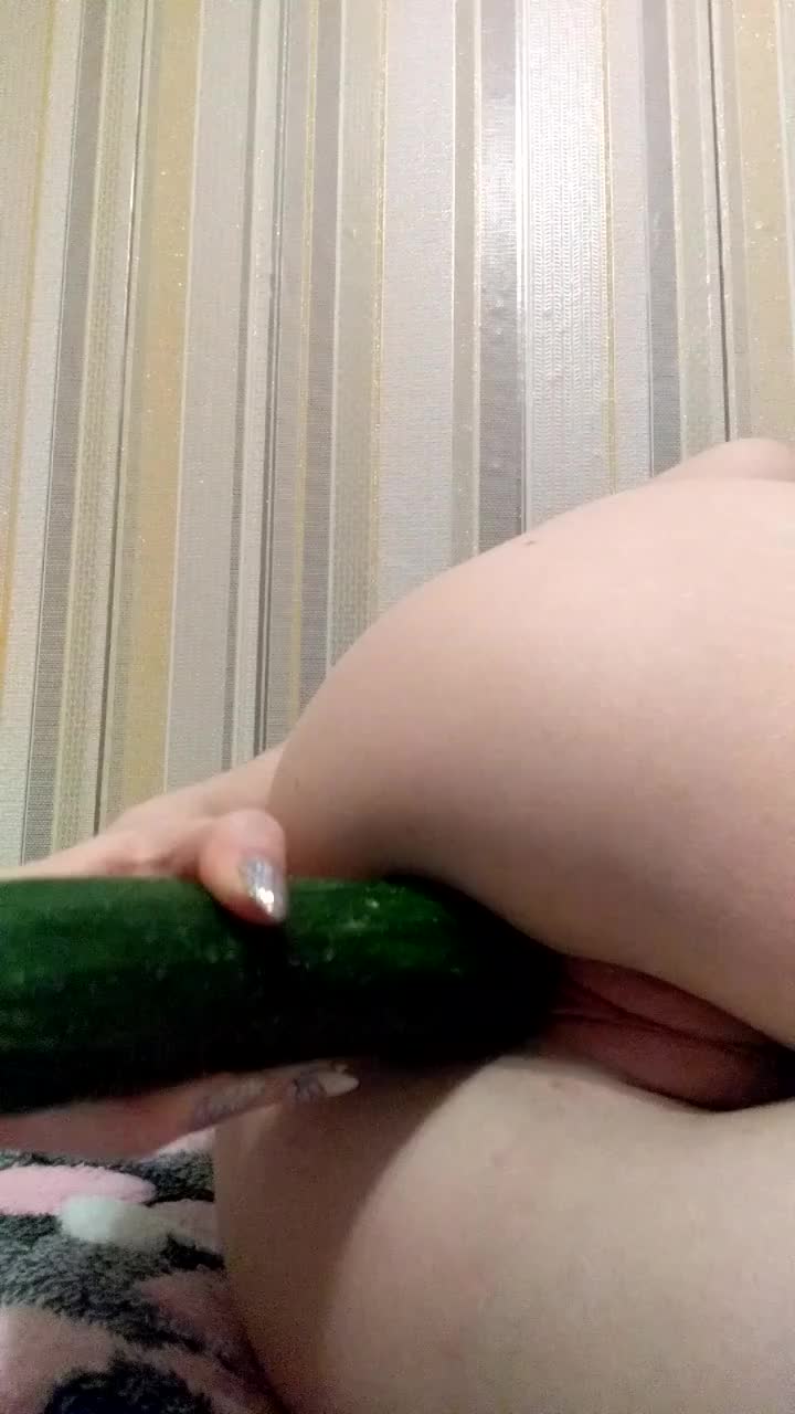 Слишком крупный огурчик она выбрала для своей похотливой выбритой пиздёнки!