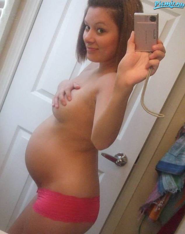 Симпатичная беремка обожает обнажённой в ванной комнате селфится!
