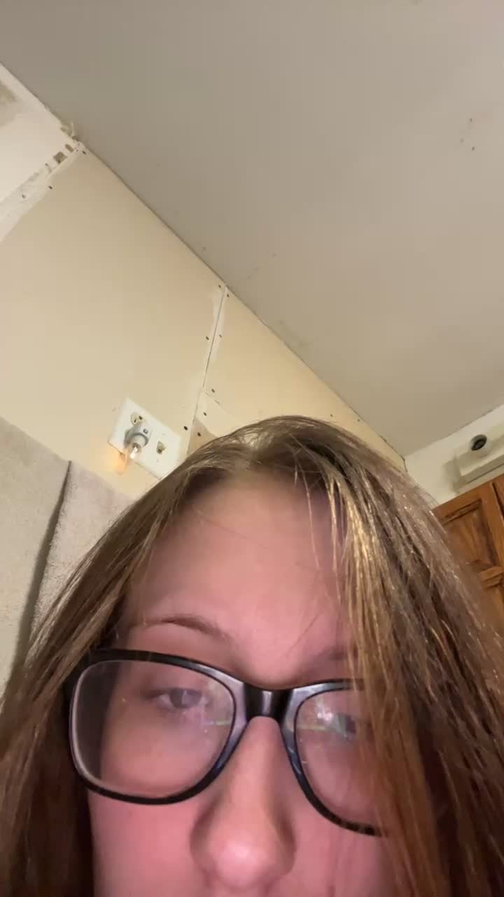 Молодая девушка в очках трахает себя в попку расческой и снимает на видео!