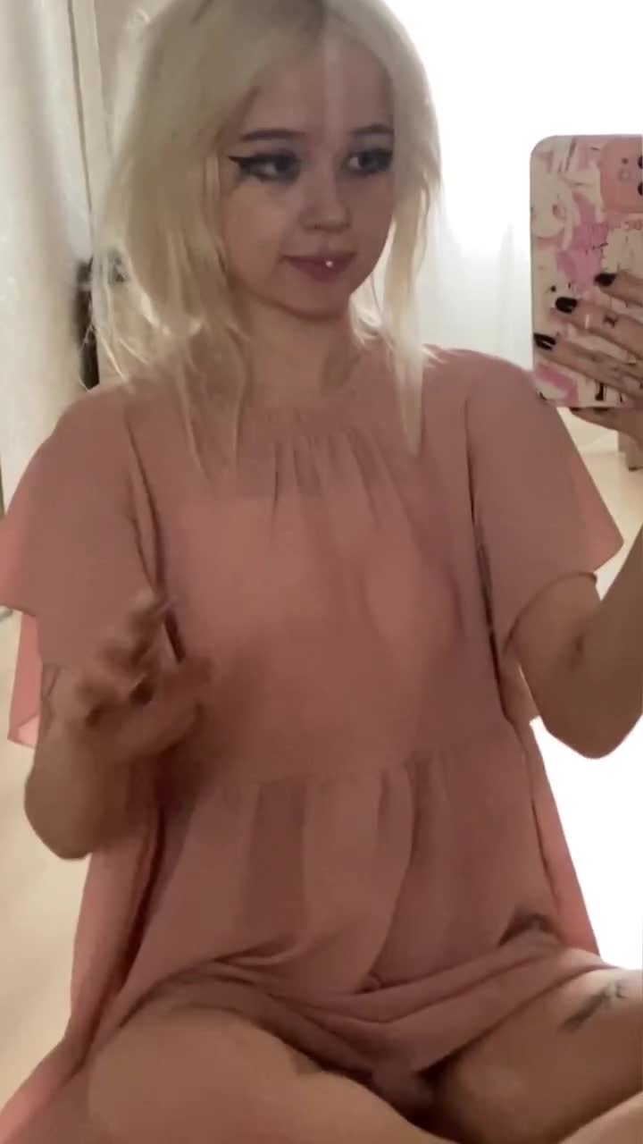 накрашенная сучка в платюшке без белья показывает свои прелести