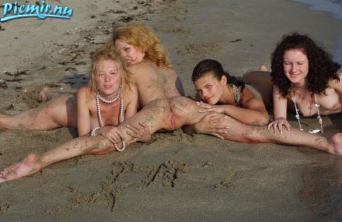 Весело красоточки отдыхают на морском прибрежном песочке голышом ножки свои расставляя!