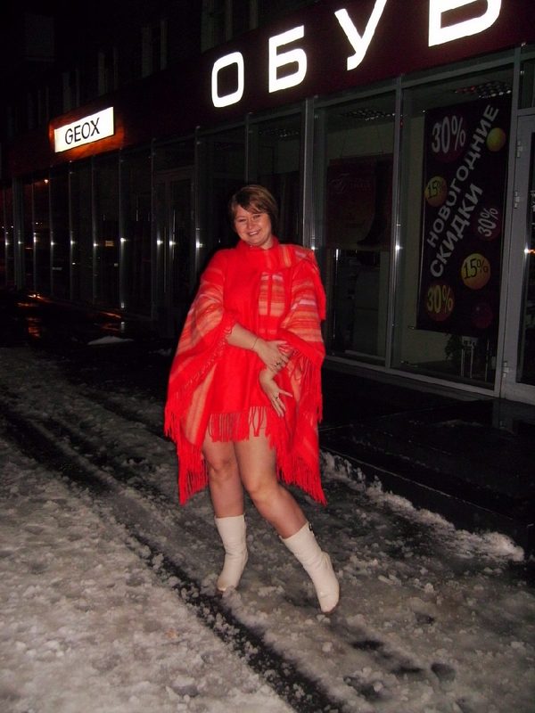 Обалденно голой Анна зимой позирует у интим магазинчика!