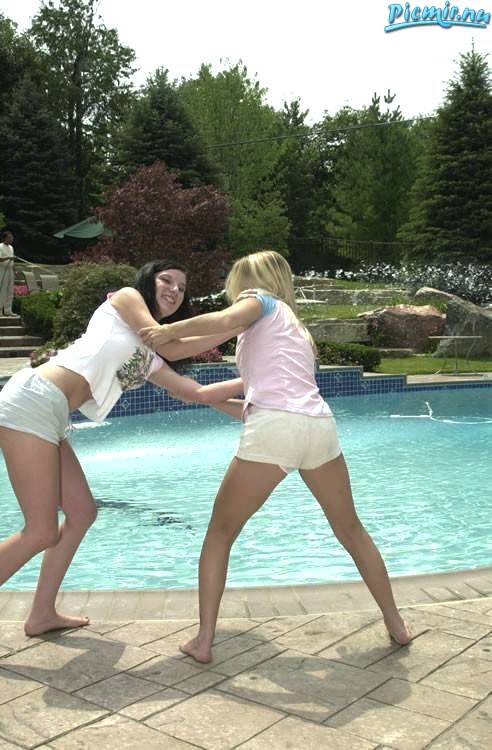 прелестно развлекаются эти молоденькие крошки в бассейне