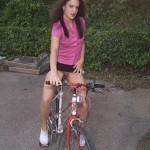 Круто ей приспичило, даже штанишки снять с себя не успела сия велосипедистка!
