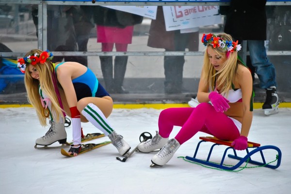 Это "Фемен". Девки красивые, но на самом деле --за бабло отморозят любэ. Многие -- бывшие спортсменки. Щас поутихли -- их спонсоры страхались.