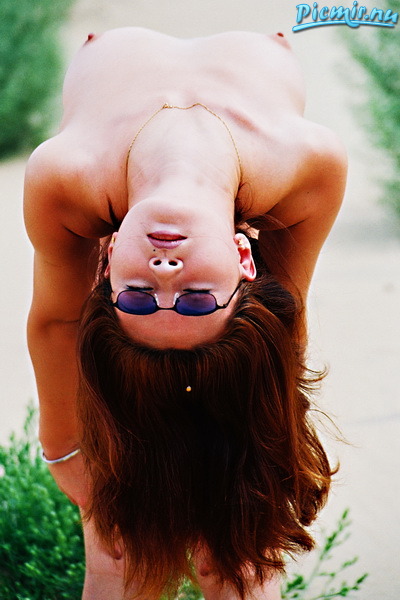 Красиво позирует обнажённой на природе сия стройная секси азиатка!