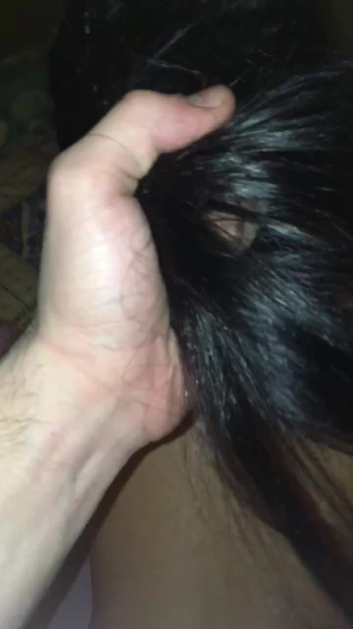 Пацан пришел в гости к подруге и активно долбит раком свою брюнеточку намотав ее волосы на руку