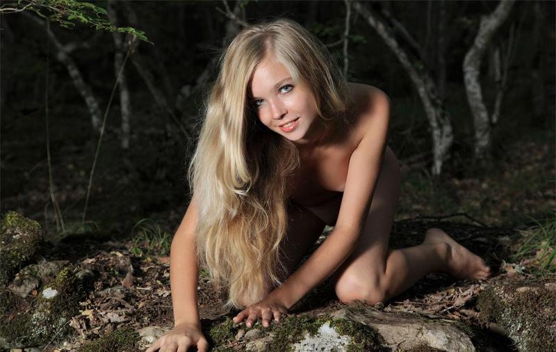 Прелестно обнажённой попозировала в тёмном лесу сия сексуальная миленькая очаровашка!