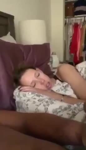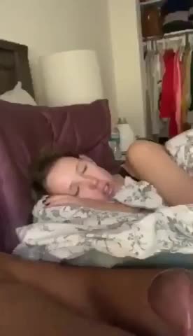 Мужик дрочит на спящую девушку и будет её прям попаданием спермы на лицо