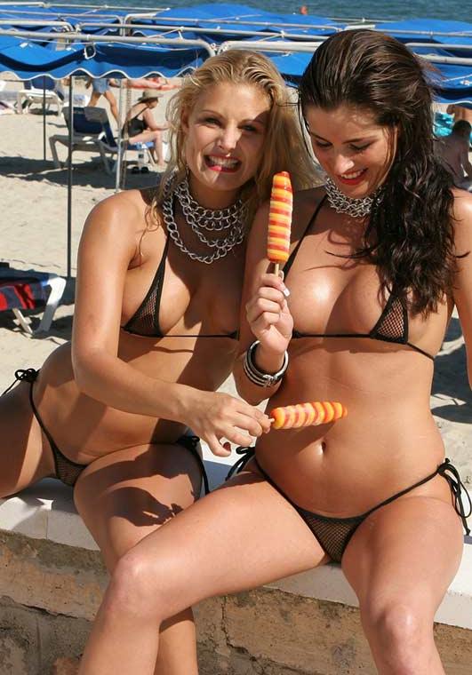 Похотливые пляжные девочки наслаждаются палящим летним солнцем и вниманием восхищенных самцов.разгуливая по пляжу в провоцирующих купальниках и сексуально вылизывая мороженое)))