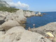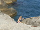 Очень красива эта молодая парочка на скалистом морском берегу отдыхающая!