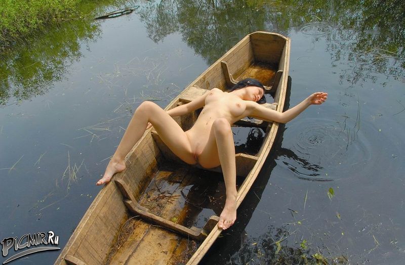 Привлекательна губастая пиздёнка у малышки в лодке голышом позирующей!