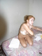 Девушка с хорошими сиськами, но не бритой киской позирует на кроватке