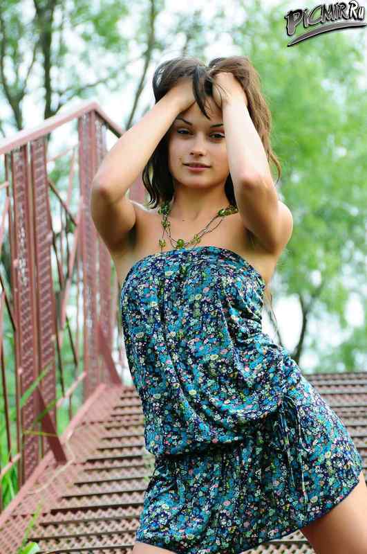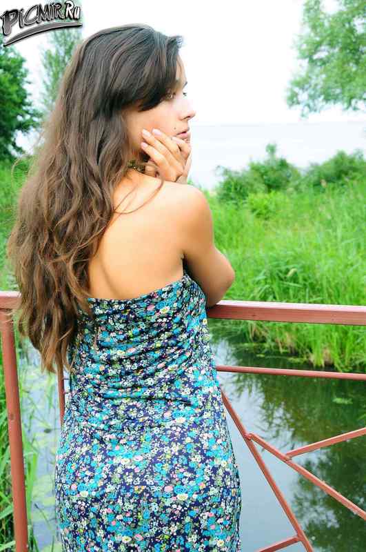 Очаровательно сия черноволосая милашечка позирует раздевшись у пруда!