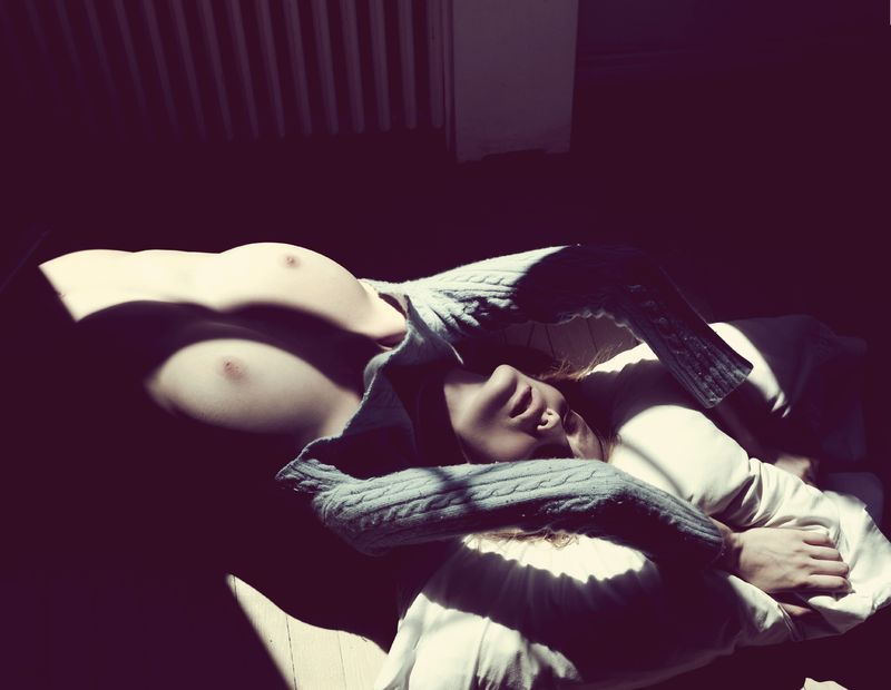 Бедняжка,еле с кровати встала после вчерашнего.Преподнесли как позирование.