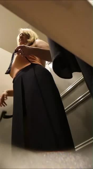 Фигуристая блондин в примерочной