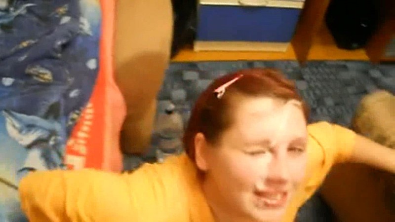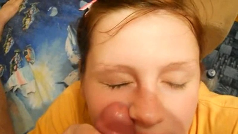 здесь эта девушка в желтой майке, сперма попадает не совсем в рот, а скорей на ее лицо