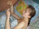 Замечательная молоденькая самочка,нежится в постельке очень привлекательно.