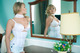Белая женщина в белом интерьере ей не хватает несколько белых капель на ее теле