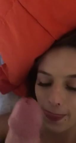 С наслаждением ублажает крупный член эта черноволосая сосочка!