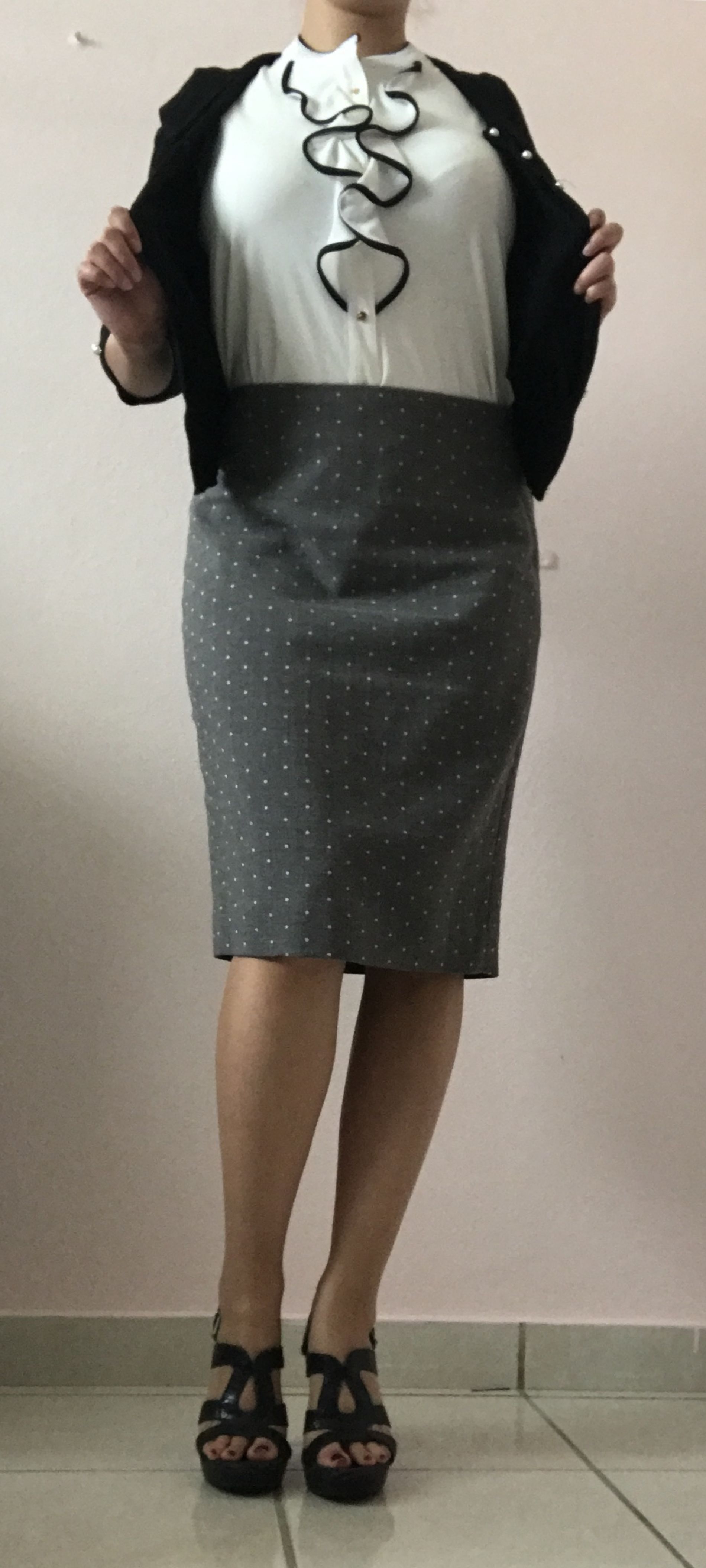 стриптиз начинает в строгом наряде и на каблуках
