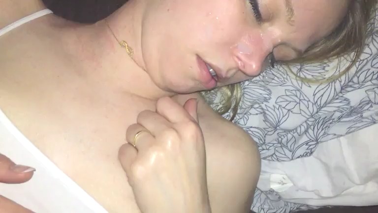 Пьяной бабенке обкончали все лицо, а она продолжила спать тих похрапывая.
