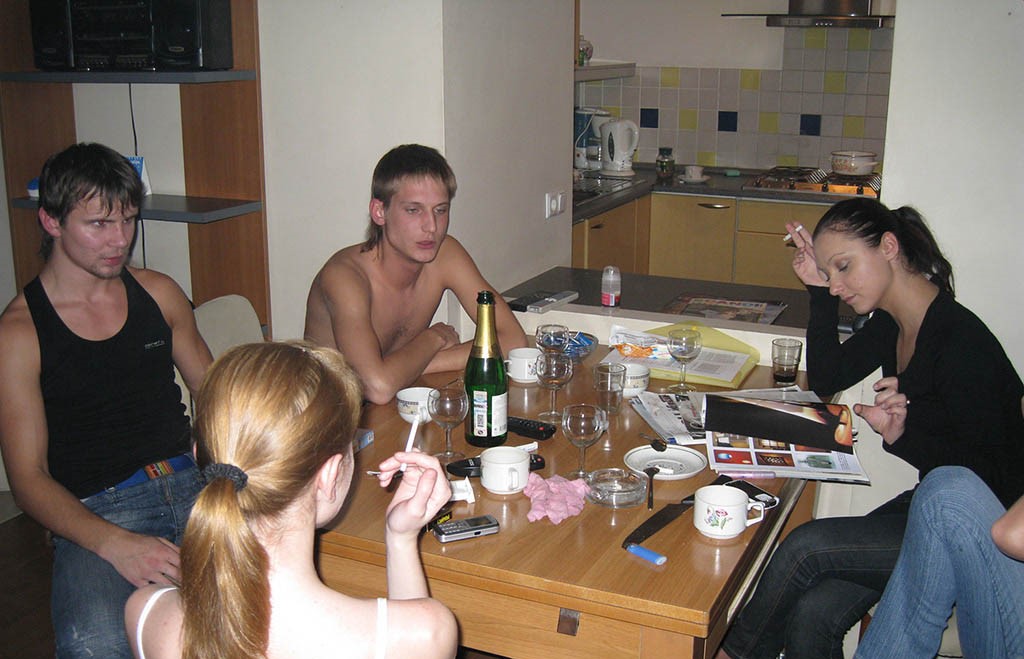 Группа молодых пар обменивается партнерами во время группового секса в пьяном виде