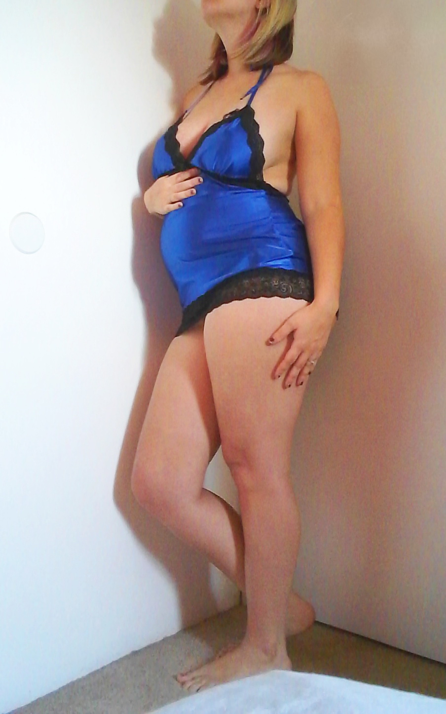 позирует в комбинашке демонстрируя свой округлившийся животик и свои наливные груди