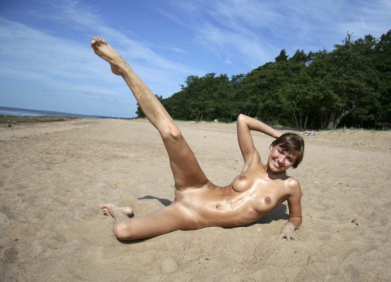 Очень привлекательна голая Алёнка на песке позирующая!