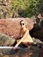 Пожилая Диана обнаженная в солнечных очках на приливе