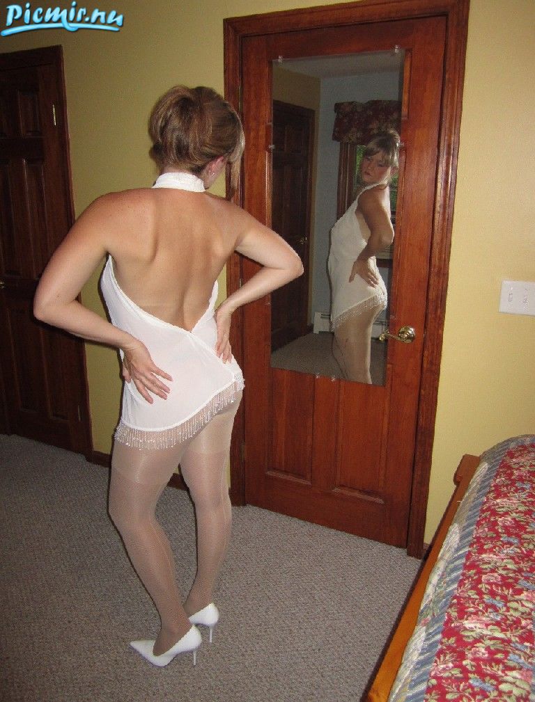 Любительница колготок без трусиков показывает едва прикрытые формы