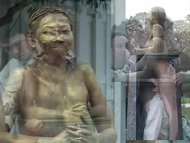Скульптор ставит в парке обнаженную девушку вместо статуи. Прохожие пользуются тем, что она не может двигаться, и трахают ее.