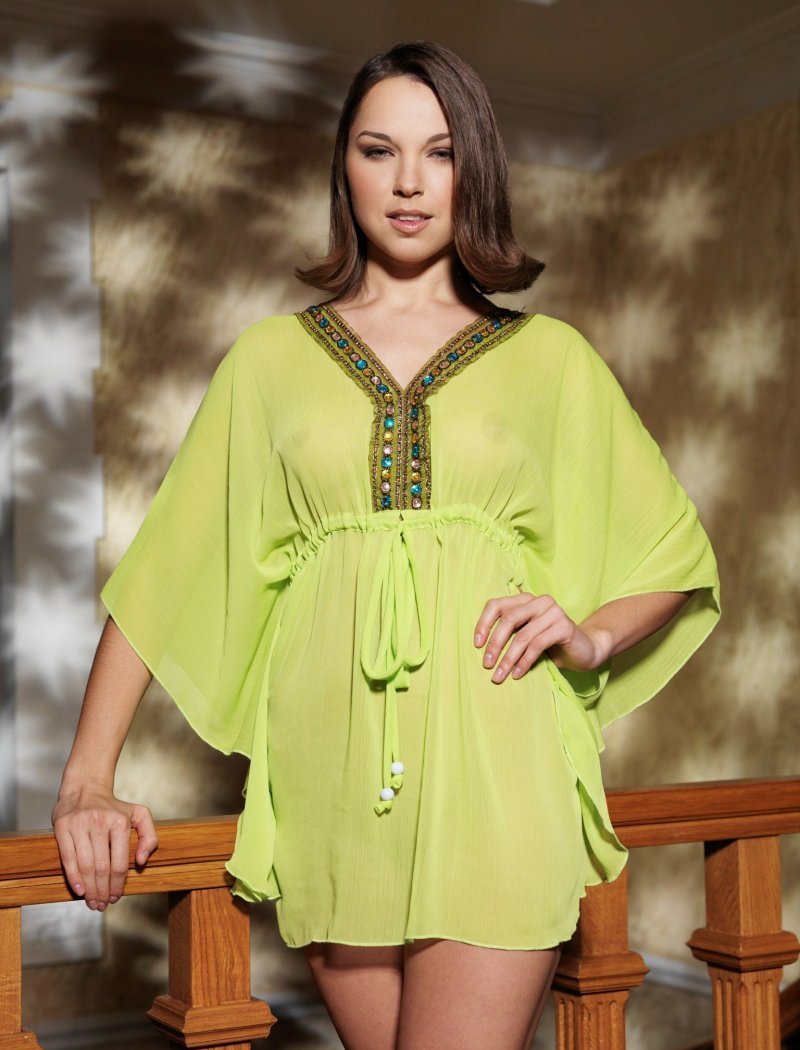 Красотка в красивом просвечивающем платье,на голое тело,позирует на фоне балясин,а затем полностью раздевается красуясь стройным телом.