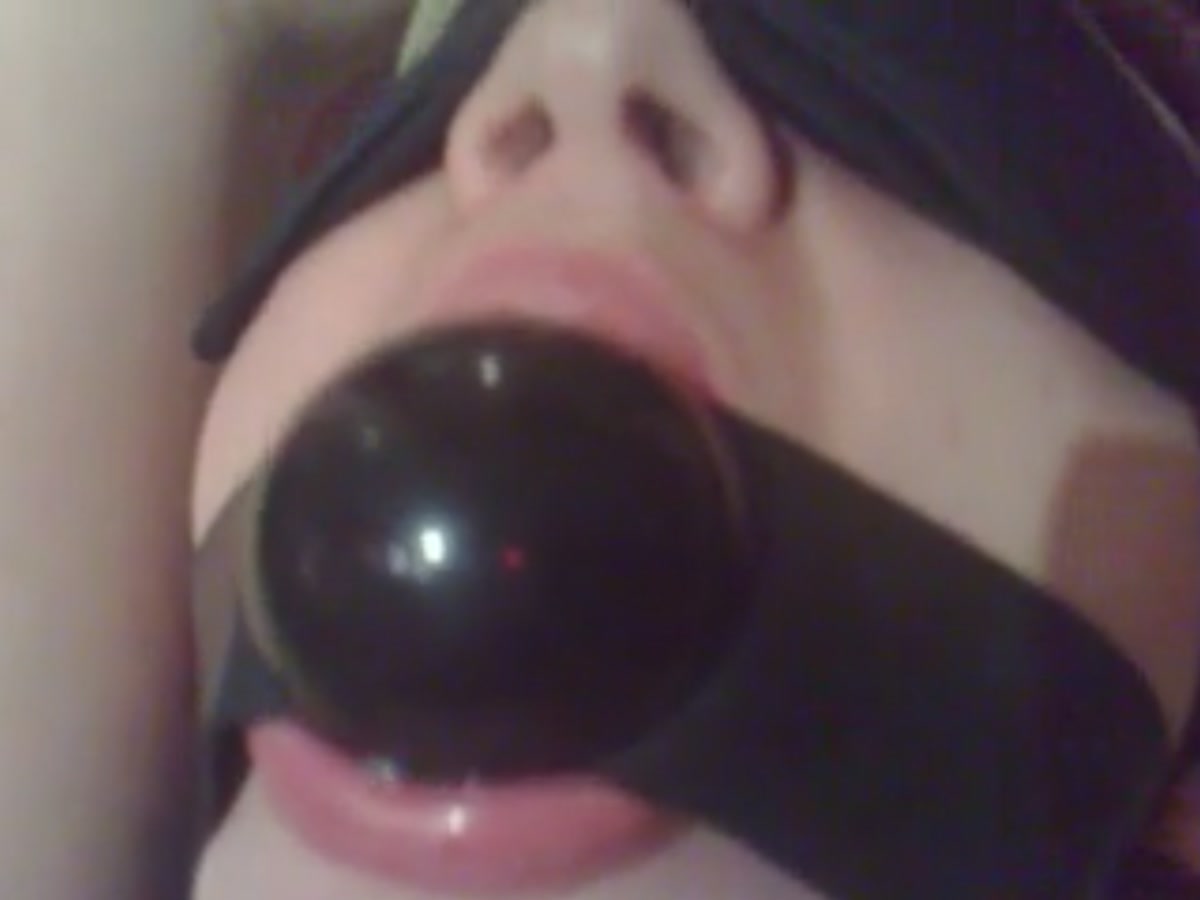 Муж связал жене руки и ноги,одел повязку и заткнул кляпом рот. После чего снял на камеру как трахает её в киску и в рот большим искусственным членом и рукой.