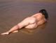 Продолжение сета с понравившейся многим пышной шатенкой. Сейчас она позирует на песчаном пляже.