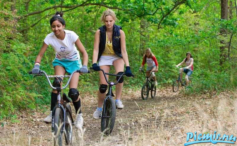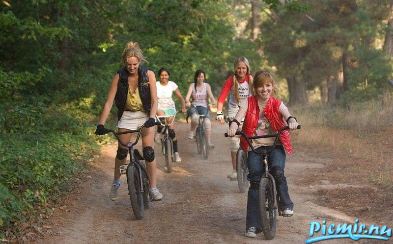 Ехали себе девочки на великах, а тут - навстречу им девка голая едет. Посмотрели на неё девки, да и сами разделись до гола, сели на велики и так голяком и поехали, все прелести хорошо проветриваются...