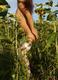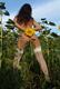 Продолжение сета. Теперь милая стройняшка откровенно позирует в подсолнухах. А из одежды на ней, только чулки и трусики.