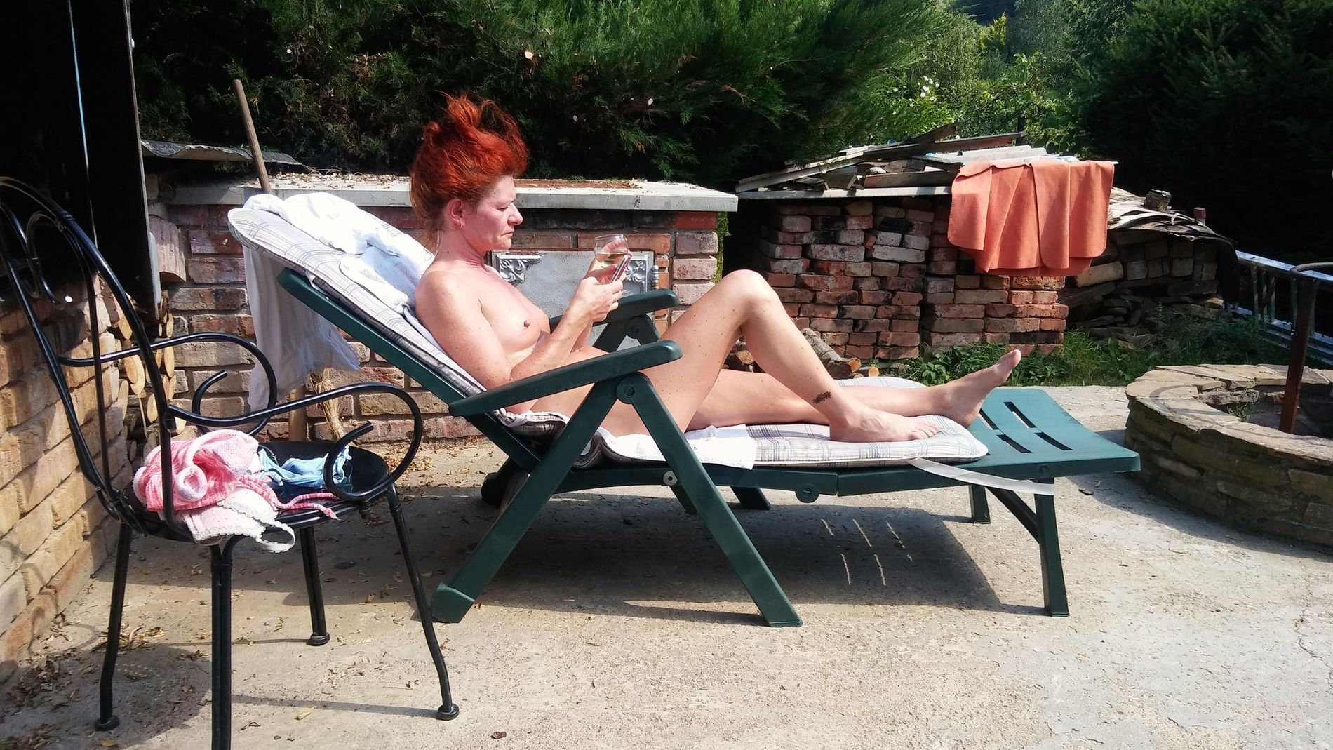 Не так молода, рыжая. Вот и личико, от солнца закрывает.