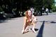 Бесстыжая барышня позирует на улице совершенно не стесняясь людей