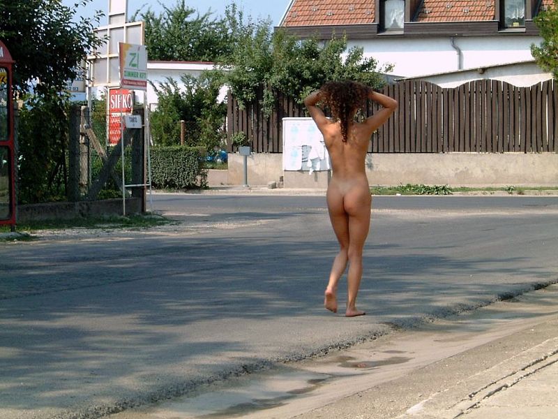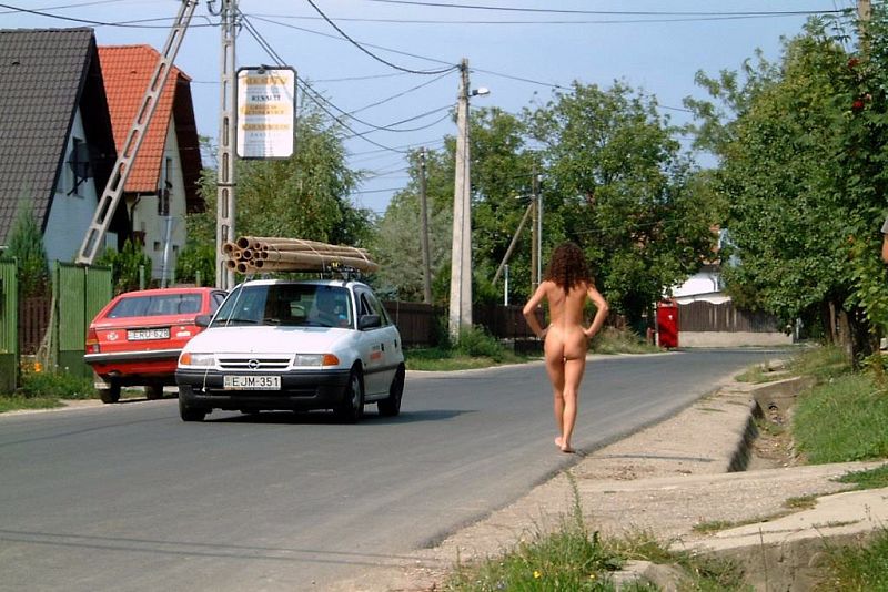Бесстыдница прогуливается, не стесняясь проезжающих мимо машин