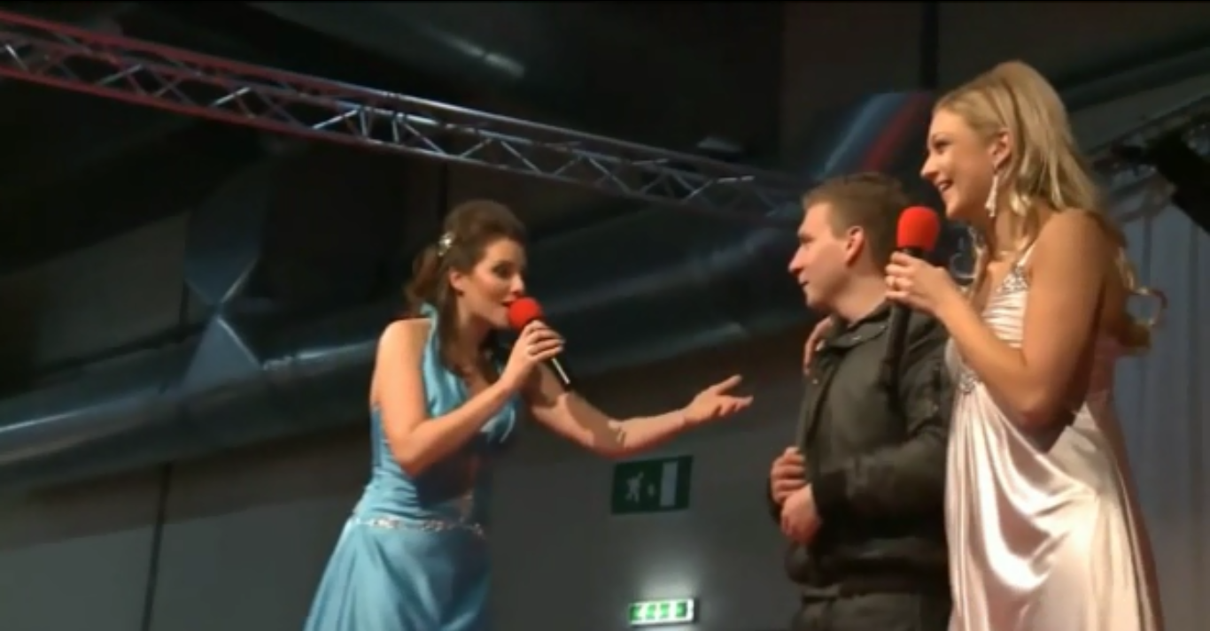 Ведущие выбрали парня из зрителей и пригласили его на сцену. Дальше всё развивалось так, как парень и не смел предположить.