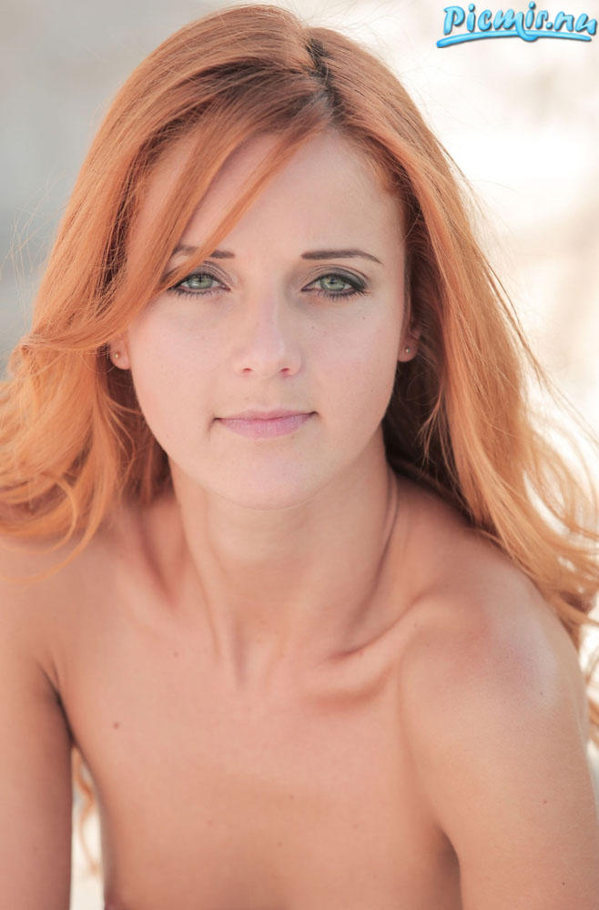 Рыженькая девушка позирует в кресле.