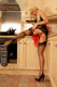 Блондинка в экстравагантных позах демонстрирует свои прелести,чулочки на ней добавляют сексуальности показу.