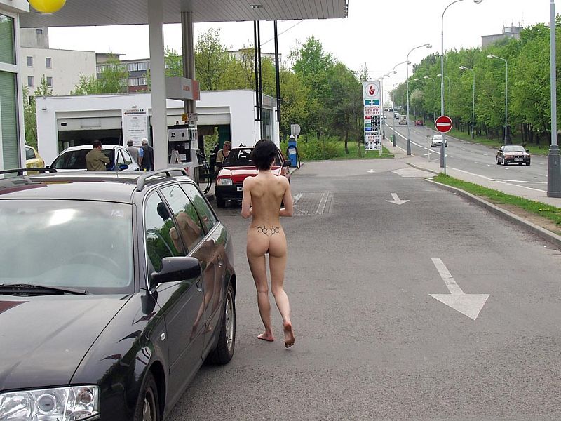 Бесстыдница не постеснялась зайти голой в магазин на заправке