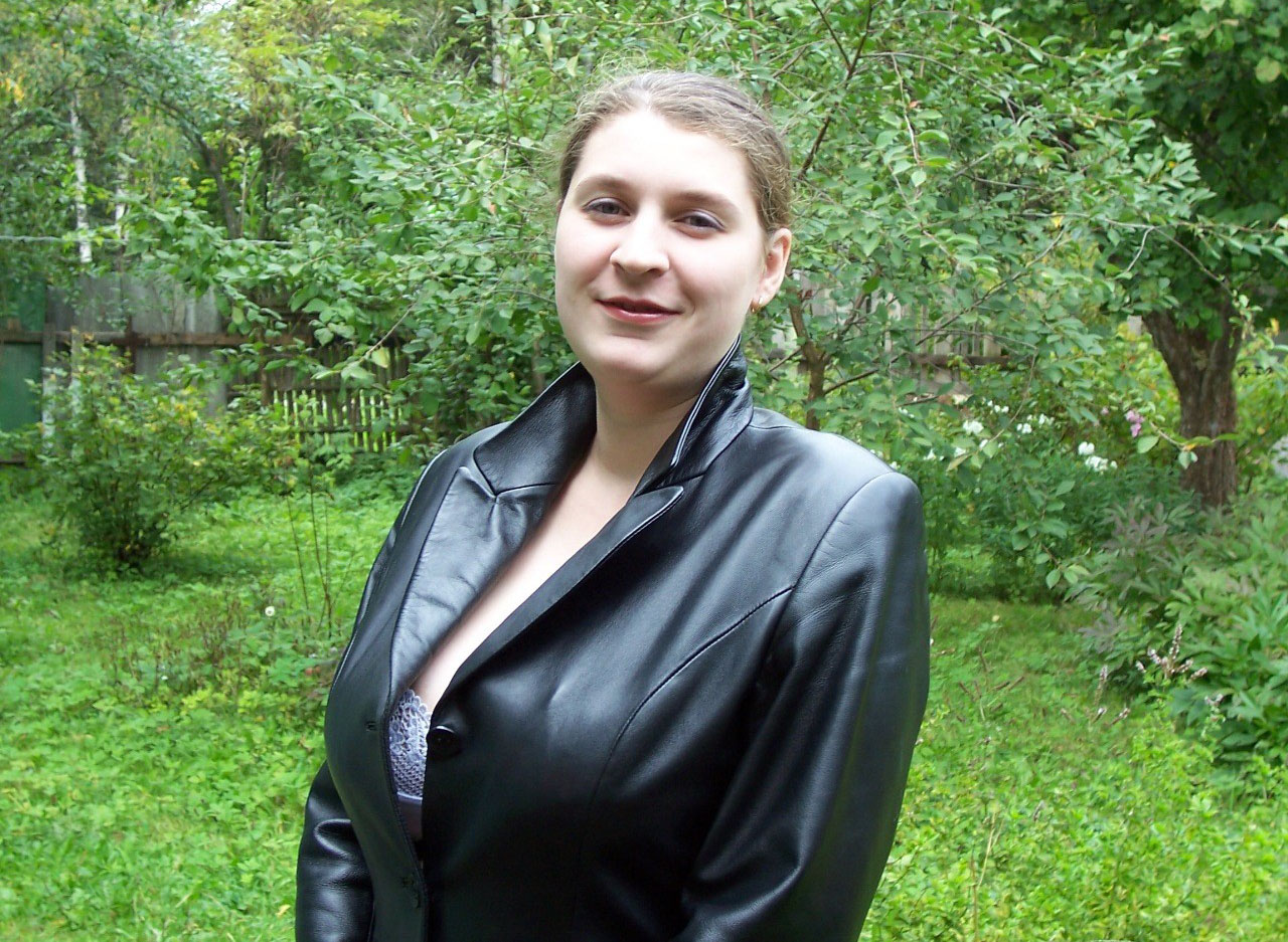Сибирская красавица в кожаном плаще 1