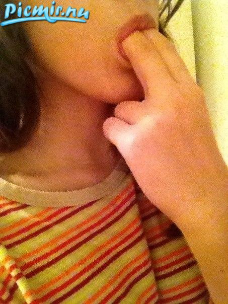 девуля решила облизнуть пальчики после кисуни