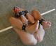 молоденькую девушку приучают к бондажу,ошейник,наручники,кляп,также навешивают груз на половые губки,ставят пришепки на сосочки
