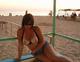 Зрелая шатенка с прекрасной фигурой и впечатляющей грудью позирует на отдыхе.