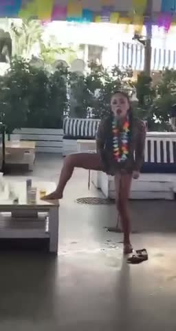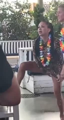 Охренеть. Во даёт. Интересно кончила или нет? Мужик в чёрном сзади смотрит как заворожённый не отрывая взгляда.
